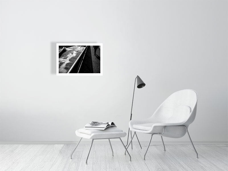 A man walks along the pedestrian walkway leading to the Erasmusbrug in Rotterdam. This image is available as a limited or open edition print.